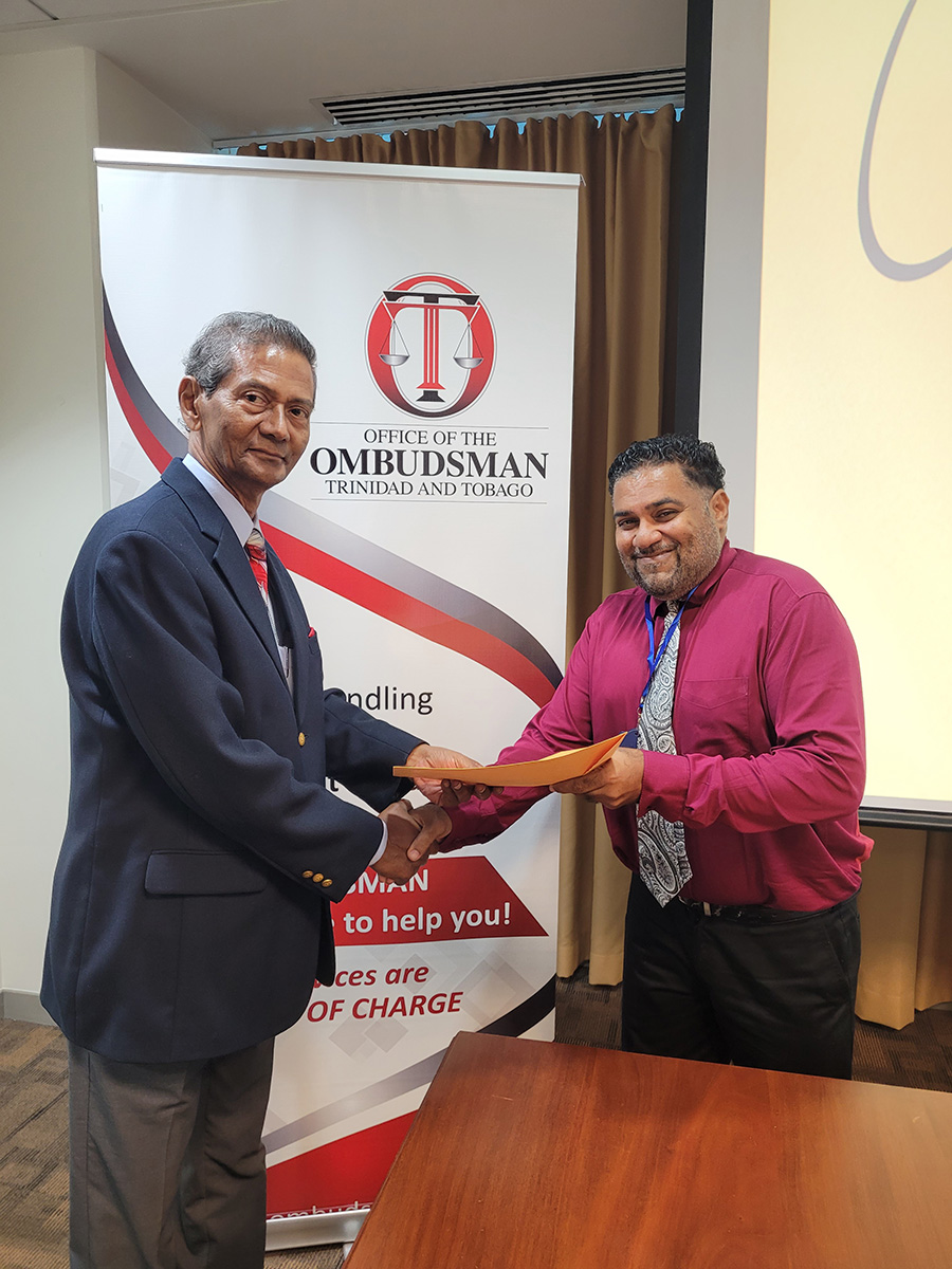 Two Investigators who were previously serving in an acting capacity were presented with their letters of promotion to Senior Investigator at a special meeting convened in their honour on Monday, January 9th, 2022 at the Office of the Ombudsman’s Head Office.